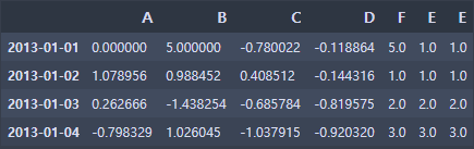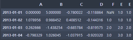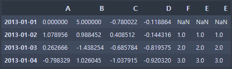 df1 = df.reindex(index=dates[0:4], columns=list(df.columns)+['E']) # 예시를 위한 df 변조