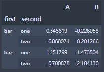df = pd.DataFrame(np.random.randn(8, 2), index=index, columns=['A', 'B'])