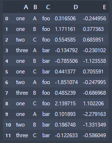 'E': np.random.randn(12)})