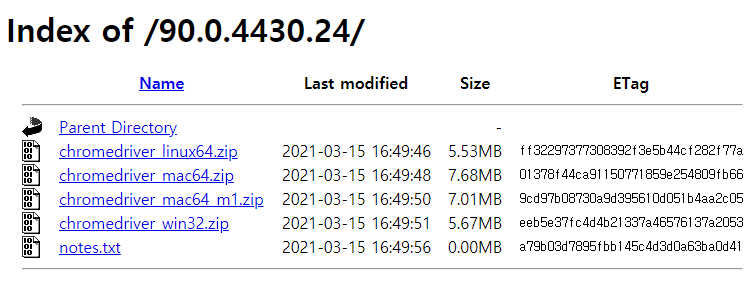 사용하고 있는 버전이 90.0.4430.~ 이므로, 같은 버전의 다운로드를 클릭합니다.