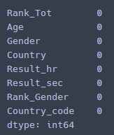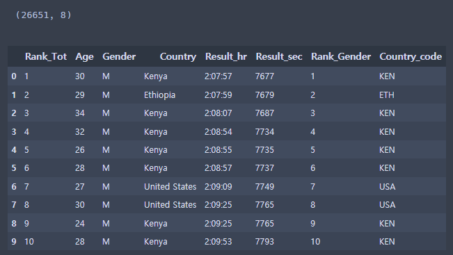 marathon_2019 = pd.read_csv('./Dataset-Boston-2019.csv') # 데이터 호출