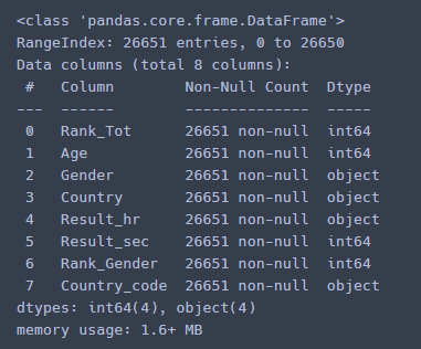 marathon_2019.info() # 데이터의 정보를 확인합니다.