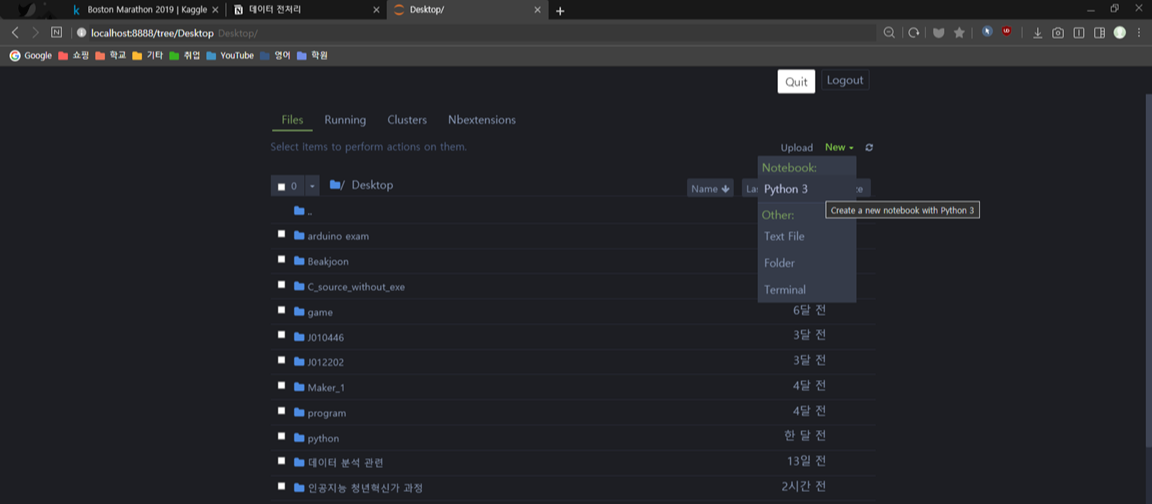 저는 주피터 노트북을 이용해서 데이터 시각화를 진행했습니다.